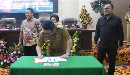 Wawali Manado Mor D Bastiaan mendandatangani berita acara Sidang Paripurna DPRD Kota Manado.