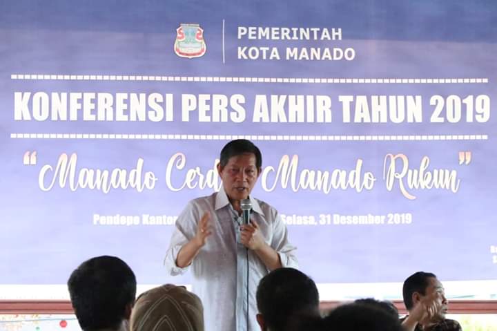 MANADO, BERITASULUT.CO.ID – Walikota Manado DR GS Vicky Lumentut (GSVL) memimpin konferensi pers (konpers) akhir tahun 2019 Pemerintah Kota Manado, di pendopo lantai 2 Kantor Walikota, Jln Balaikota, Selasa (31/12/2019) sore.