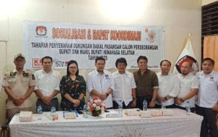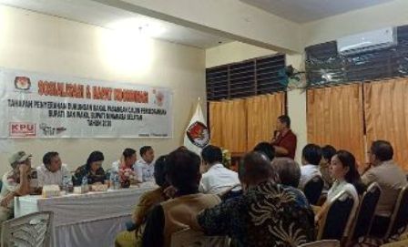AMURANG, BERITASULUT.co.id – Komisi Pemilihan Umum (KPU) Kabupaten Minahasa Selatan (Minsel) menggelar Sosialisasi dan Rapat Koordinasi (Rakor) Tahapan Penyerahan Dukungan Bakal Pasangan Calon (Paslon) Perseorangan Bupati dan Wakil Bupati Minsel Tahun 2020, Senin (17/02/2020).