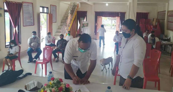 Penandatanganan berita acara oleh Hukum Tua Ben Watania