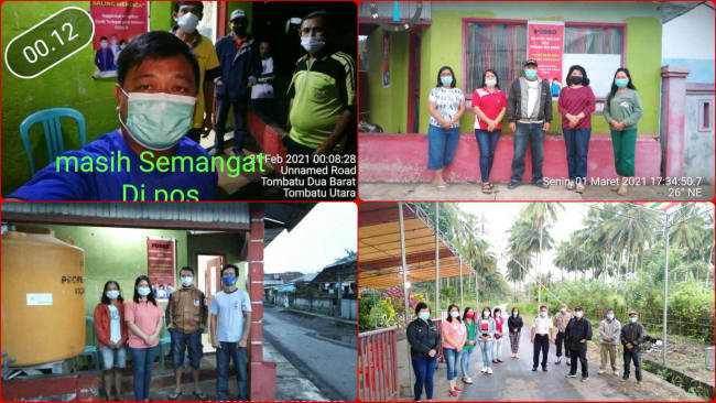 Lanjut, sementara berkaitan dengan penanganan Covid-19 di Desa Tombatu Dua Barat, mulai dari anggaran, persiapan, sosialisasi sampai pelaksanaan dan pelayanan terus dimaksimalkan. Seluruh warga, tokoh masyarakat, tokoh agama ikut dilibatkan. Demikian halnya posko siaga yang melibatkan perangkat desa, BPD, ASN dan THL di desa setempat. Bukan itu saja, bahkan posko siaga Covid-19 ini juga dimanfaatkan pemerintah setempat dalam menjaga keamanan dan ketertiban masyarakat (Kamtibmas).