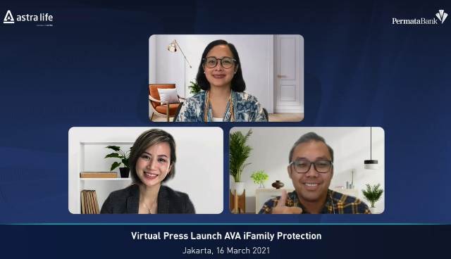 AVA iFamily Protection di Permata Mobile X diluncurkan Selasa (16/03/2021) hari ini melalui virtual press conference dengan menghadirkan narasumber Ancilla Lily selaku Head of Bancassurance & Direct Business Astra Life, Ursula Sista Pravesthi selaku Head of Wealth Management Retail Liabilities Products & Customer Segment Permata Bank, dan Alain Tandi selaku Head of Wealth Management Product Permata Bank.