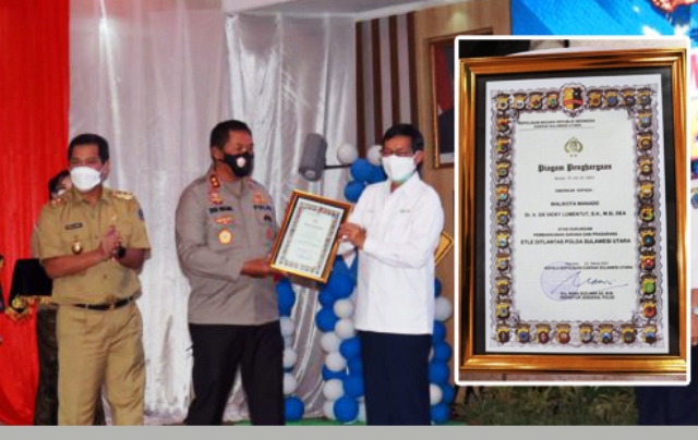 Pada kesempatan tersebut, Kapolda Nana Sudjana memberikan penghargaan kepada Walikota Manado Dr GS Vicky Lumentut (GSVL) yang telah mempermudah Polda Sulut menerapkan ETLE ini dengan dukungan sarana dan prasana yang terpusat di Cerdas Command Center (C3).