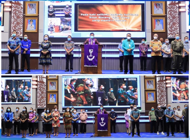 MANADO, BERITASULUT.co.id – Suasana berbeda nampak dalam ibadah awal bulan Pemerintah Kota Manado, Kamis (01/04/2021) pagi.