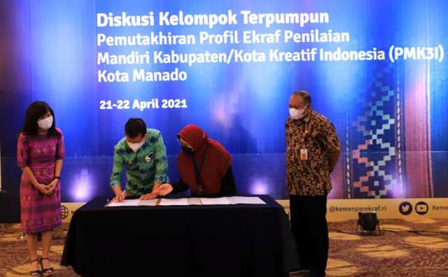 Kota Manado menjadi salah satu daerah yang masuk Penilaian Mandiri Kabupaten/Kota Kreatif Indonesia (PMK3I) oleh Kemenparekraf. PMK3I merupakan metode untuk memetakan dan mengidentifikasi subsektor ekraf potensial dari suatu kabupaten/kota secara terstruktur.