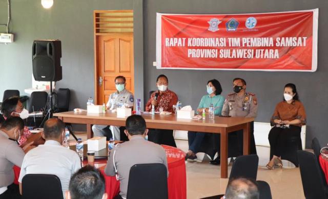 Manado, BERITA SULUT – Pemerintah Provinsi Sulawesi Utara memfasilitasi pelaksanaan Rapat Koordinasi (Rakor) Tim Pembina Sistem Administrasi Manunggal Satu Atap (Samsat) Provinsi Sulut, yang digelar di Manado, Jumat (10/09/2021).