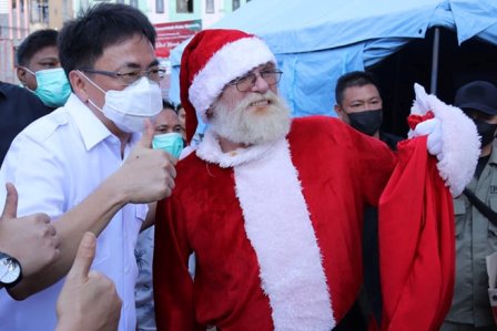 Menarik dari kunjungannya kali ini, tak sungkan orang nomor satu di Ibukota Provinsi Sulawesi Utara ini foto bareng Santa Claus atau Sinterklas.