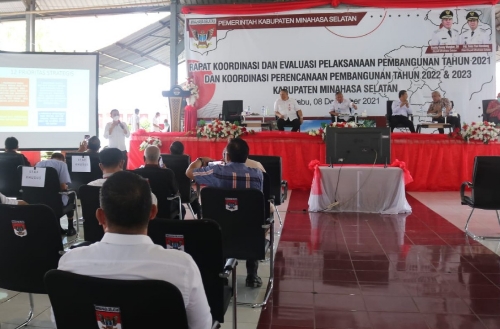 Hal tersebut disampaikan Bupati saat membuka Rapat Koordinasi dan Evaluasi (Rakorev) Pelaksanaan Pembangunan Tahun 2021, dan Koordinasi Perencanaan Pembangunan Tahun 2022 dan 2023 Kabupaten Minsel di Aula Waleta Kantor Bupati, Amurang, Rabu (08/12/2021).