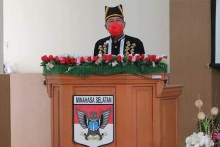 Bupati Minsel Franky Donny Wongkar. membawakan sambutan di Rapat Paripurna Istimewa DPRD Minsel dalam rangka HUT Minsel ke-19.