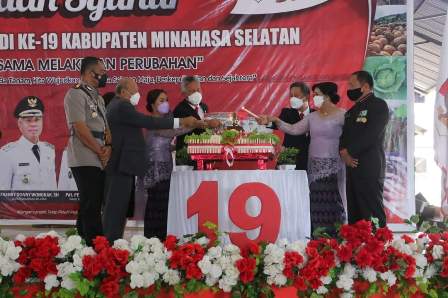 Amurang, BERITASULUT.co.id – Pemerintah Kabupaten Minahasa Selatan (Minsel) melaksanakan sejumlah agenda dalam rangka memperingati Hari Ulang Tahun (HUT) ke-19 Kabupaten Minsel dengan tema “Bersama Lakukan Perubahan”, Kamis (27/01/2022).