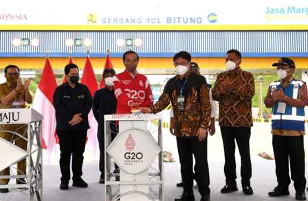 Peresmian jalan tol sepanjang 39 kilometer ini dilakukan di gerbang tol Bitung, Jumat (25/02/2022) sore.