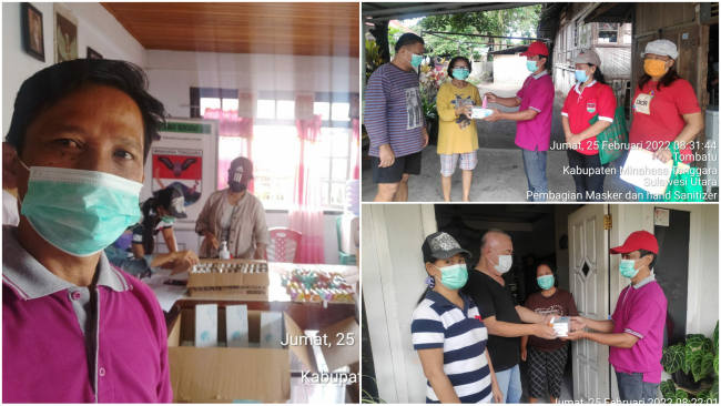 Salah satu upaya yang dilakukan adalah membagikan masker dan hand sanitizer kepada masyarakat. Bahkan, Hukum Tua Ronald Mamahit bersama jajarannya sampai harus naik turun rumah warga.