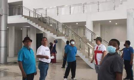 Di sela kegiatan jalan sehat, Bupati E2L meninjau progres pembangunan kantor yang baru. Ia dan jajarannya masuk ke dalam gedung yang masih dalam tahap penyelesaian, dan melihat-lihat sejauh mana progres penyelesaian bangunan tersebut.