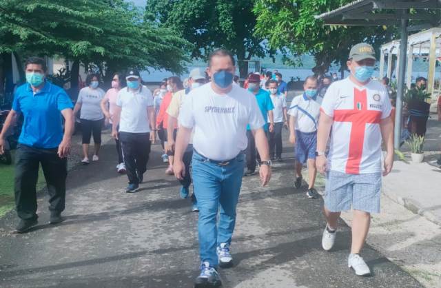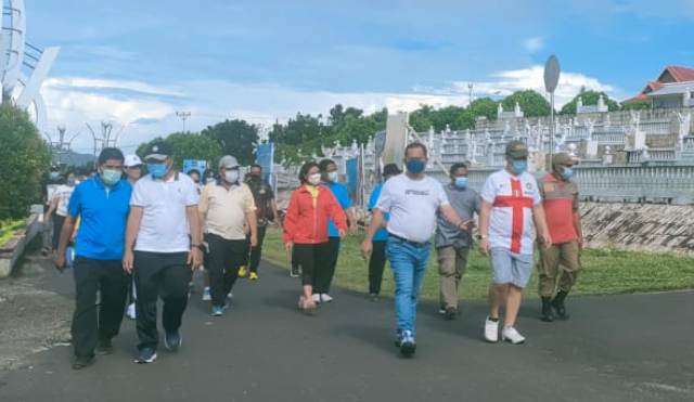 Jalan sehat dilakukan dengan mengambil start dari kediaman Bupati E2L dan finish di rumah dinas bupati dengan melintasi beberapa titik ruas jalan di perkotaan Melonguane.