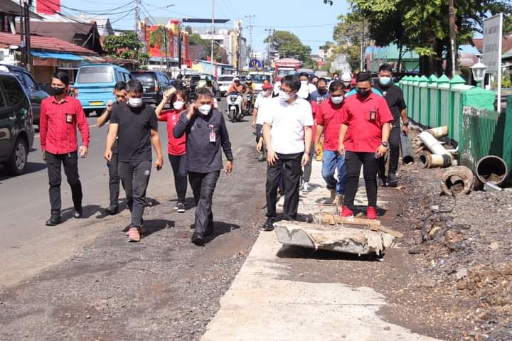 Siang tadi, Jumat (04/03/2022), Walikota Manado Andrei Angouw didampingi sejumlah pejabat melihat kondisi drainase dan sejumlah fasilitas lainnya yang rusak akibat banjir.