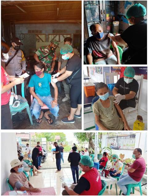 Selain melayani vaksinasi di puskesmas, tapi juga aksi door to door atau mengunjungi warga di rumah dan jemput bola terus dilakukan untuk melakukan vaksinasi Covid-19 kepada masyarakat membuahkan hasil yang maksimal.