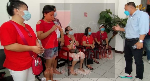 Para warga diterima Wakil Ketua DPRD Adrey Laikun. Tak hanya menerima, ia juga sempat melayani warga dengan memberikan makan dan minum.