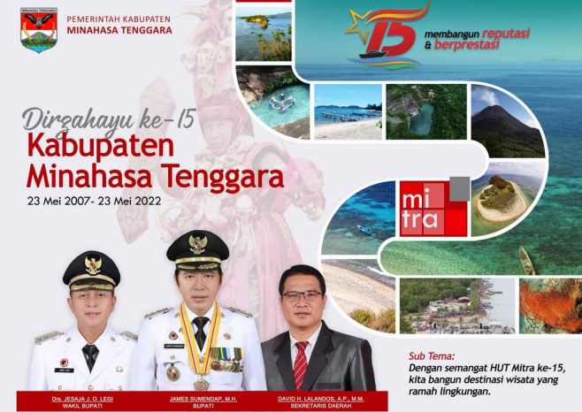 BERITASULUT.co.id – Tepatnya hari ini 23 Mei 2022, Kabupaten Minahasa Tenggara merayakan hari ulang tahun ke-15, (23 Mei 2007-23 Mei 2022).