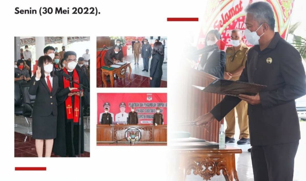 Pengambilan sumpah jabatan berlangsung di Aula Waleta Kantor Bupati Minsel, Amurang, Senin (30/05/2022).