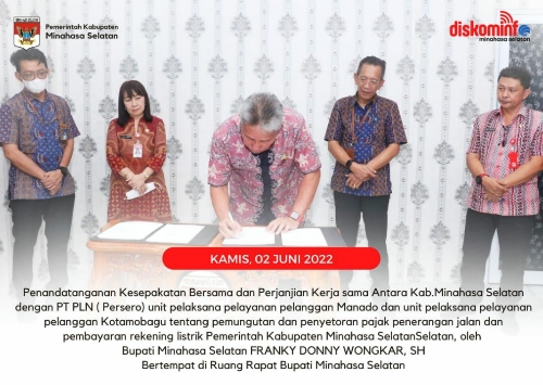 Selain itu dalam kesempatan ini juga Bupati Frangky D Wongkar melakukan penandatanganan kesepakatan bersama dan perjanjian kerja sama antara Pemkab Minsel dengan PT PLN (Persero) unit pelaksana pelayanan pelanggan Manado dan Kotamobagu tentang pemungutan dan penyetoran pajak penerangan jalan dan pembayaran rekening listrik Pemkab Minsel.