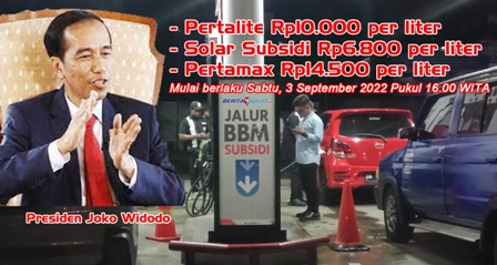 – Harga Pertalite dari Rp7.650 per liter menjadi Rp10.000 per liter