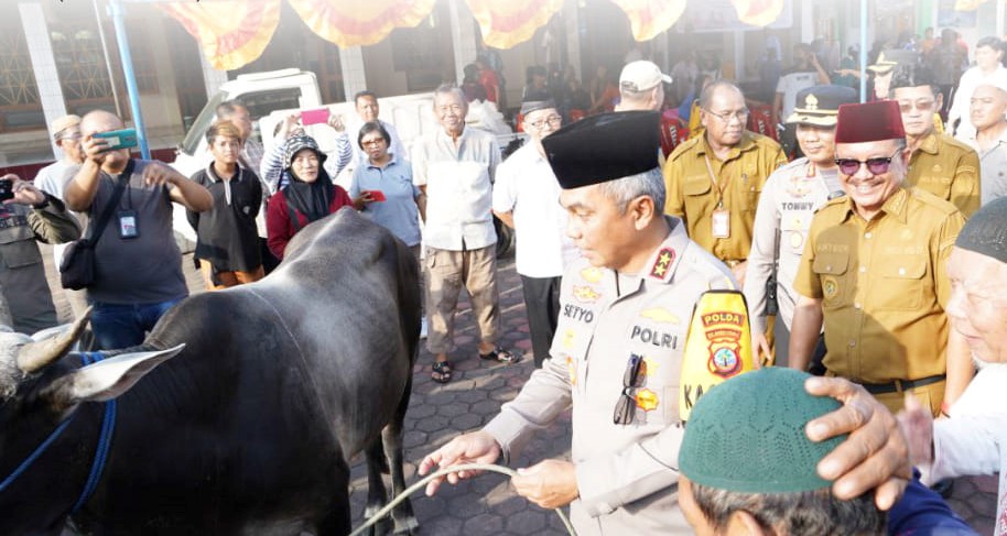 Giat Kapolda Sulut ini adalah bagian dari pelaksanaan pengendalian inflasi daerah, yaitu menyerahkan bantuan daging sapi untuk umat muslim di Kota Bitung.