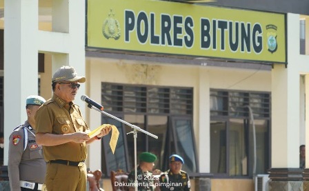 Di Kota Bitung, apel dipusatkan di lapangan Mapolres Bitung, Senin (17/4/2023) pagi, dimana Walikota Bitung Maurits Mantiri menjadi inspektur upacara (irup).