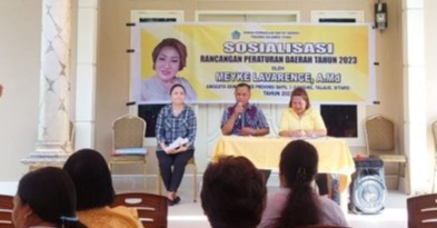 Anggota DPRD Sulut Meyke Lavarence melaksanakan sosialisasi Ranperda BRIDA di Kabupaten Kepulauan Sangihe.