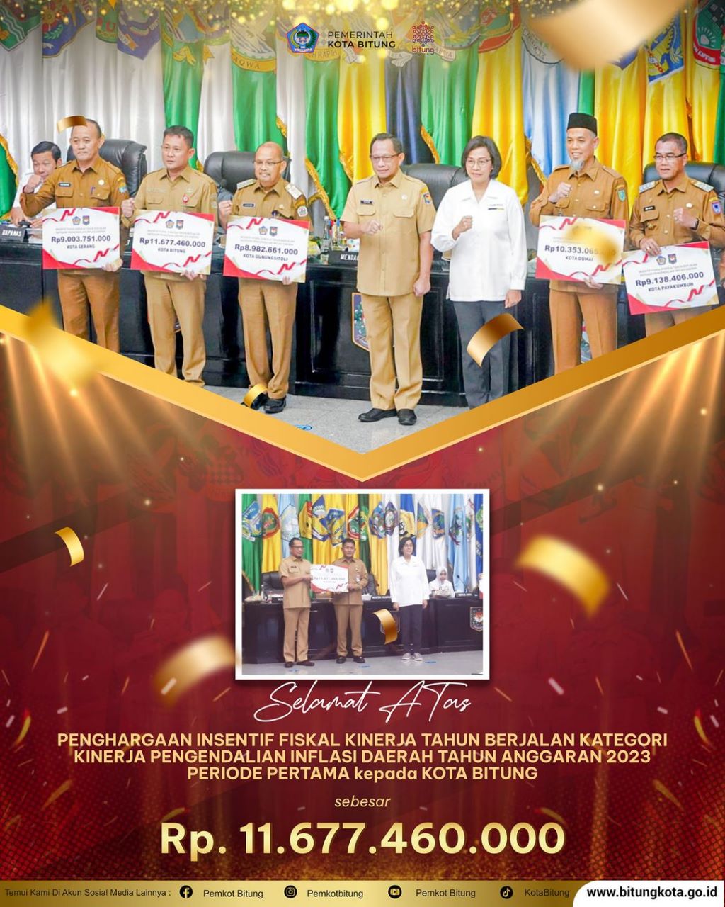Insentif ini diberikan karena pemerintah daerah berhasil mengendalikan inflasi, sehingga berkontribusi besar terhadap pengendalian inflasi nasional sebesar 3,52% secara tahunan per Juni 2023.
