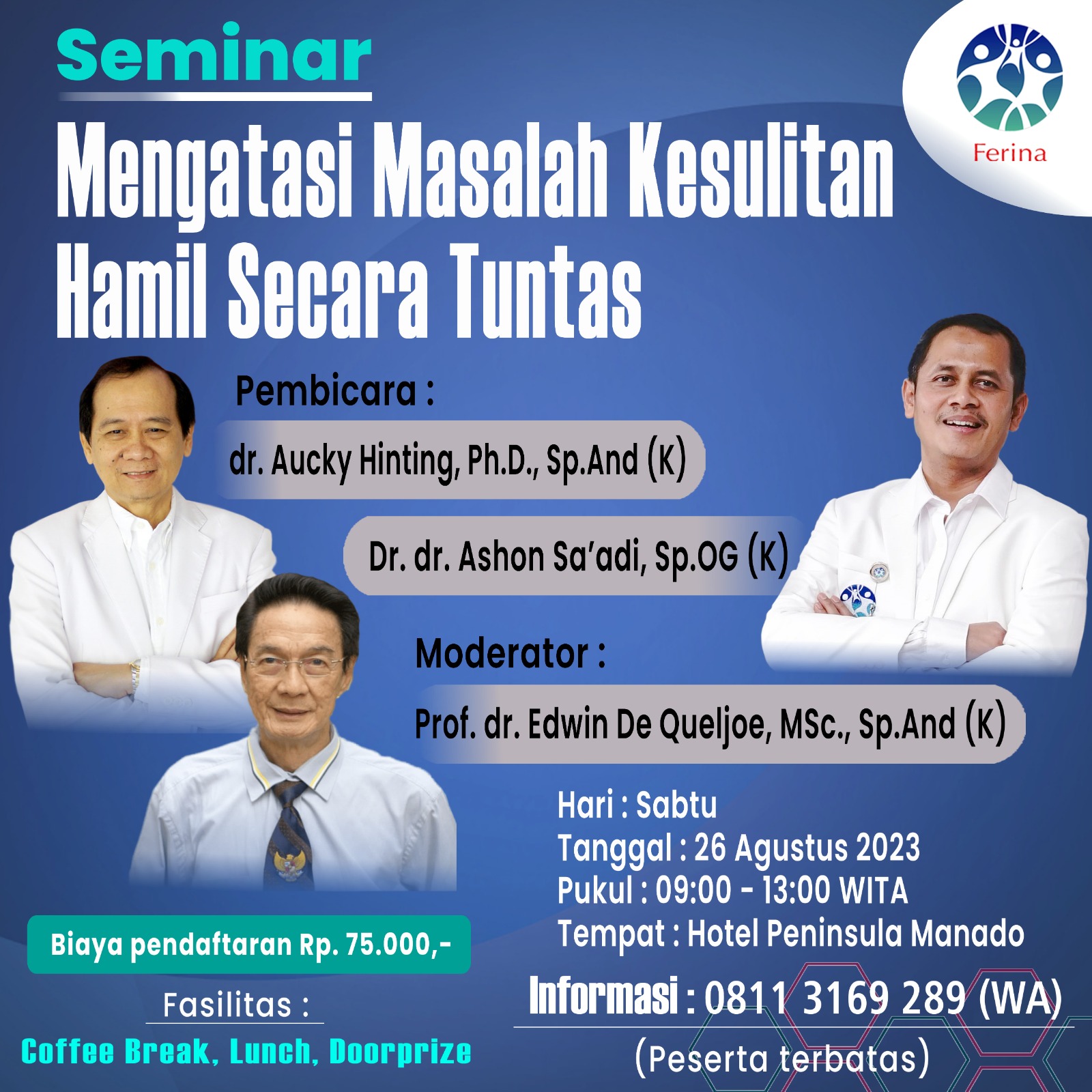 Manado, BERITASULUT.co.id – Tim Fertilitas di RSIA Ferina Surabaya yang sudah bertahun-tahun menangani program kehamilan termasuk bayi tabung, bakal datang ke Kota Manado untuk mengadakan seminar “Mengatasi Masalah Kesulitan Hamil Secara Tuntas”, pada Sabtu (26/8/2023).akhir pekan ini.