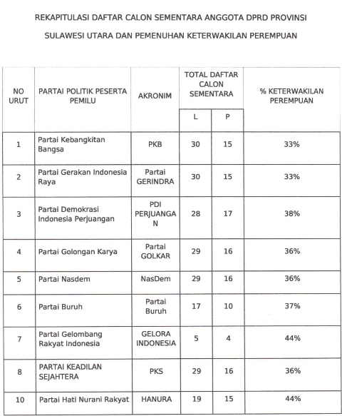 Berikut ini DCS Anggota DPRD Provinsi Sulawesi Utara tertuang dalam surat Pengumuman Nomor 292/PL.01.4-Pu/71/2/2023.