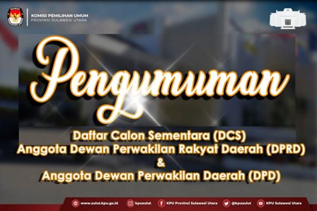 Manado, BERITASULUT.co.id – Komisi Pemilihan Umum (KPU) Provinsi Sulawesi Utara (Sulut) telah mengumumkan Daftar Calon Sementara (DCS) Anggota DPRD Provinsi Sulawesi Utara dalam Pemilihan Umum (Pemilu) Tahun 2024 dan Daftar Calon Sementara (DCS) Anggota Dewan Perwakilan Daerah (DPD) RI Daerah Pemilihan (Dapil) Provinsi Sulawesi Utara dalam Pemilihan Umum (Pemilu) Tahun 2024.