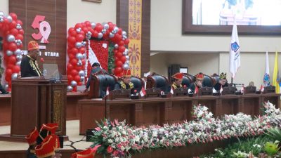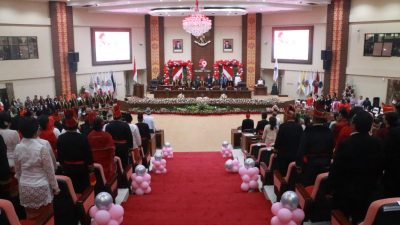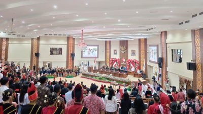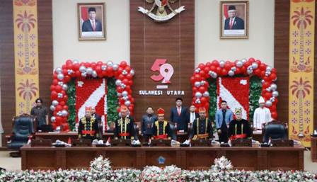 Manado, BERITASULUT.co.id – Dewan Perwakilan Rakyat Daerah (DPRD) Provinsi Sulawesi Utara (Sulut) menggelar Rapat Paripurna Dalam Rangka Memperingati Hari Ulang Tahun (HUT) Provinsi Sulut yang ke-59 Tahun, di Ruang Rapat Paripurna DPRD Sulut, Kairagi, Manado, Sabtu (29/9/2023) pagi.