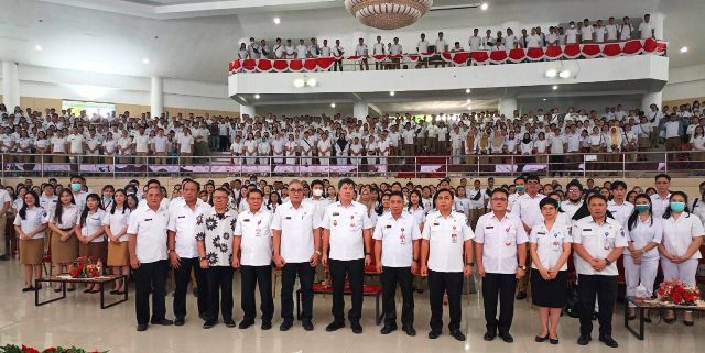 Dihadiri Sekprov Sulut Steve Kepel, Asisten III Fransiskus Manumpil, Kepala BKAD Clay Dondokambey dan Sekretaris BKD serta ribuan THL.