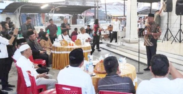 Gubernur Sulawesi Utara Olly Dondokambey, menghadiri acara buka puasa bersama sekaligus melakukan penandatanganan Prasasti Pembangunan Menara Masjid Jami’ Nurul Huda, yang berlokasi di Kelurahan Ketang Baru, Kota Manado, Senin (8/4/2024).