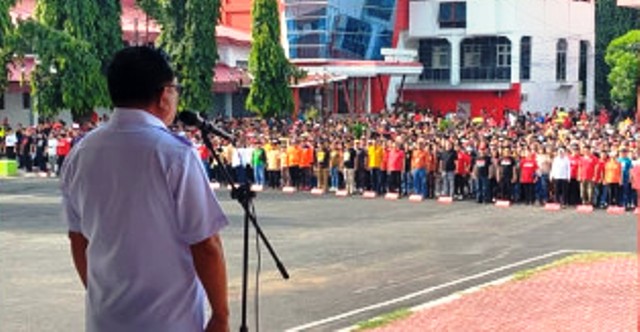Apel yang diadakan di lapangan upacara Kantor Walikota Bitung, Selasa (16/4/2024) pagi, dihadiri oleh Aparatur Sipil Negara (ASN) dan Tenaga Harian Lepas (THL) Pemkot Bitung serta TNI.