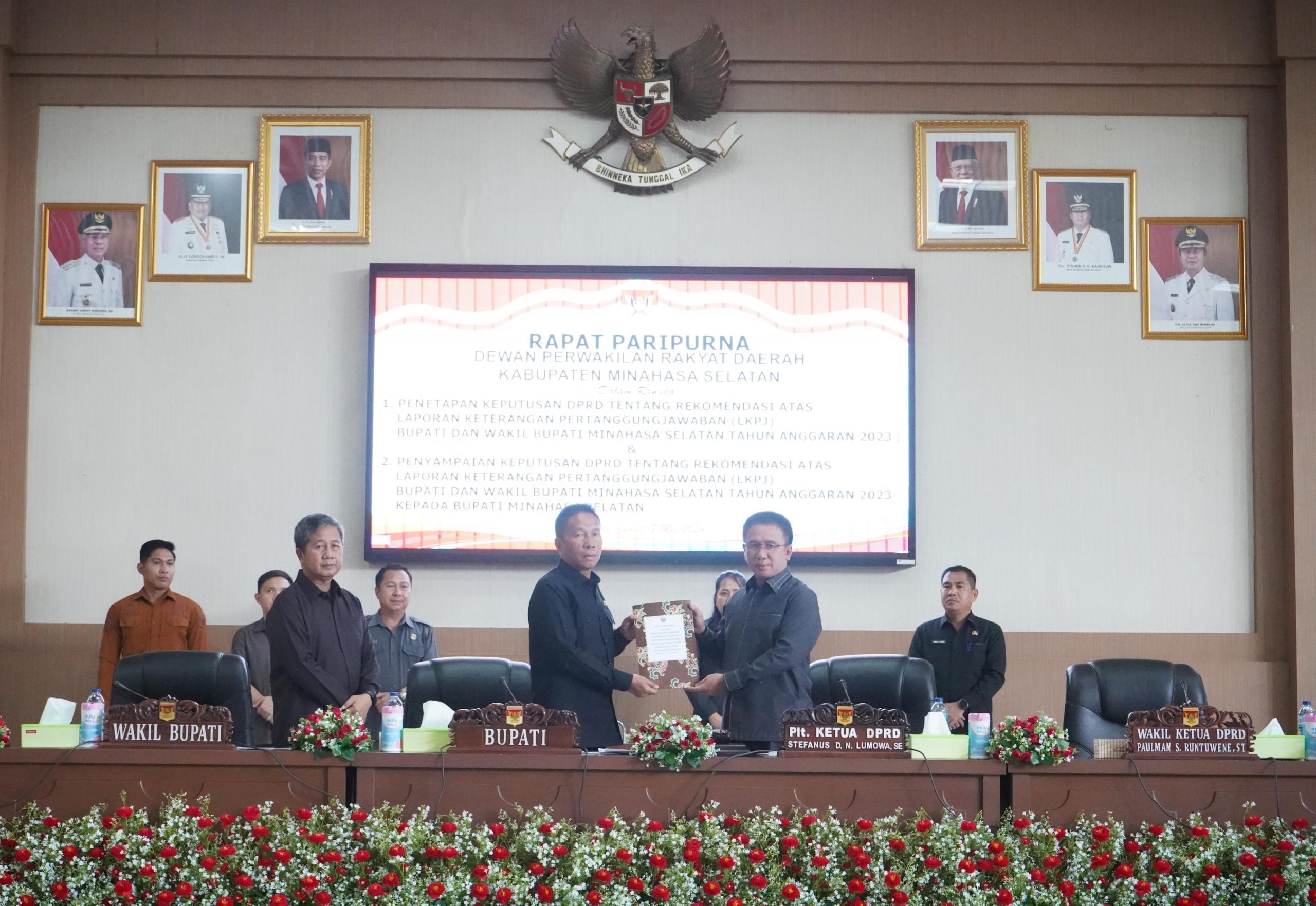 Agenda rapat paripurna tersebut adalah penetapan keputusan DPRD Tentang Rekomendasi Atas Laporan Keterangan Pertanggungjawaban (LKPJ) Bupati dan Wabup Minsel Tahun Anggaran (TA) 2023.