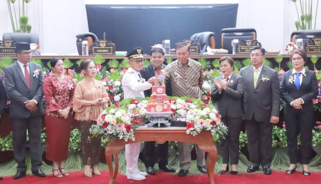 RATAHAN, BERITASULUT.co.id – Dewan Perwakilan Rakyat Daerah (DPRD) Kabupaten Minahasa Tenggara (Mitra), menggelar Rapat paripurna dalam rangka HUT ke 17 Kabupaten Mitra, Senin (27/5/2024). Ketua DPRD Marty Ole didampingi Wakil Ketua Tonny Lasut dan Wakil Ketua Katrien Mokodaser saat membuka kegiatan yang digelar di Soekarno Legislative Hall, penuh sukacita menyambut para tamu dan undangan lainnya.