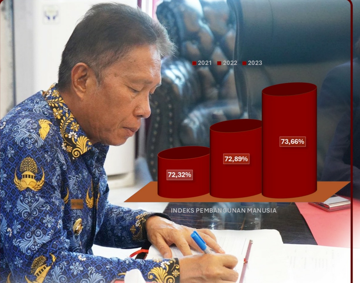 Pada Tahun 2021 IPM Kab. Minsel 72.32%, Pada Tahun 2022 IPM Kab. Minsel naik 72.89% dan Pada Tahun 2023 Kab. Minsel naik lagi 73.66%.