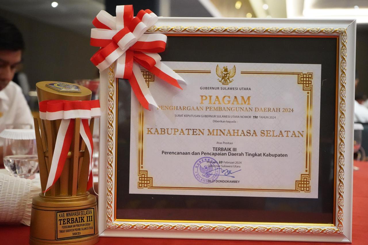 Penghargaan pembangunan daerah yang dinilai menyangkut kualitas penyusunan dokumen perencanaan dan inovasi daerah dimana yang diajukan oleh Pemkab Minsel adalah inovasi gerakan mari jo batanam.