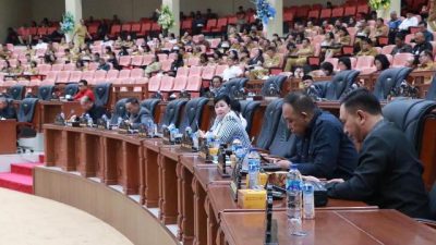 Hadir dalam rapat ini antara lain para Anggota DPRD Sulut, Sekprov Sulut Ir Steve Keppel dan sejumlah pejabat Pemprov Sulut, serta Forkopimda Sulut.