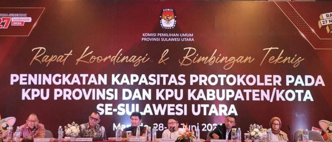 Untuk mewujudkannya, maka KPU Provinsi Sulawesi Utara (Sulut) menyelenggarakan Rapat Koordinasi (Rakor) dan Bimbingan Teknis (Bimtek) Peningkatan Kapasitas Protokoler, yang dilaksanakan di Hotel Manado Tateli, Jumat-Minggu (28-30/6/2024).