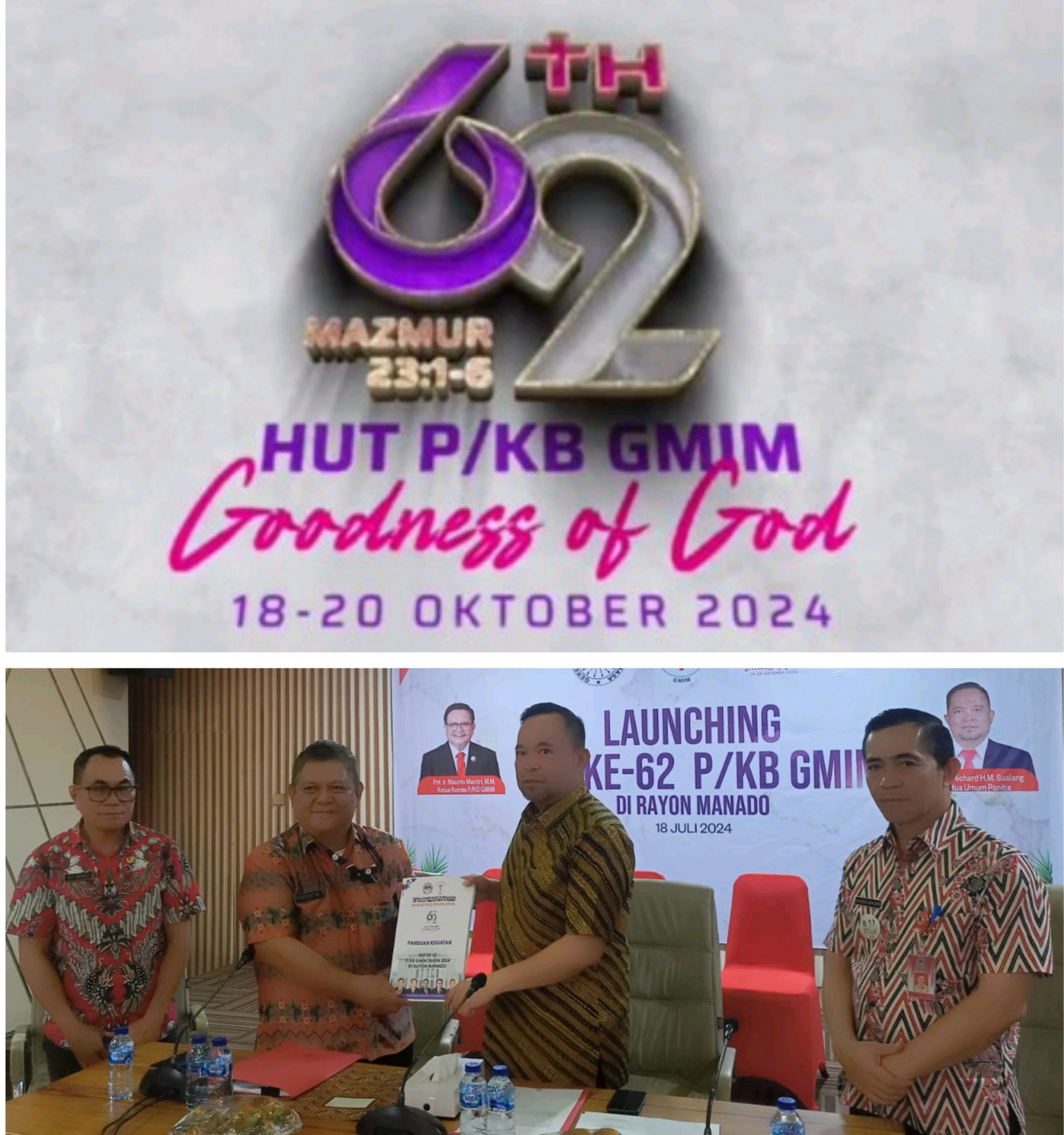 Manado, BERITASULUT.CO.ID – Tema dan logo HUT ke-62 P/KB Sinode GMIM tahun 2024 resmi dilaunching oleh panitia di bawah pimpinan Ketua Umum Pnt dr Richard Sualang, di Ruang Toar Lumimuut Kantor Walikota Manado, Kamis (18/7/2024) sore.