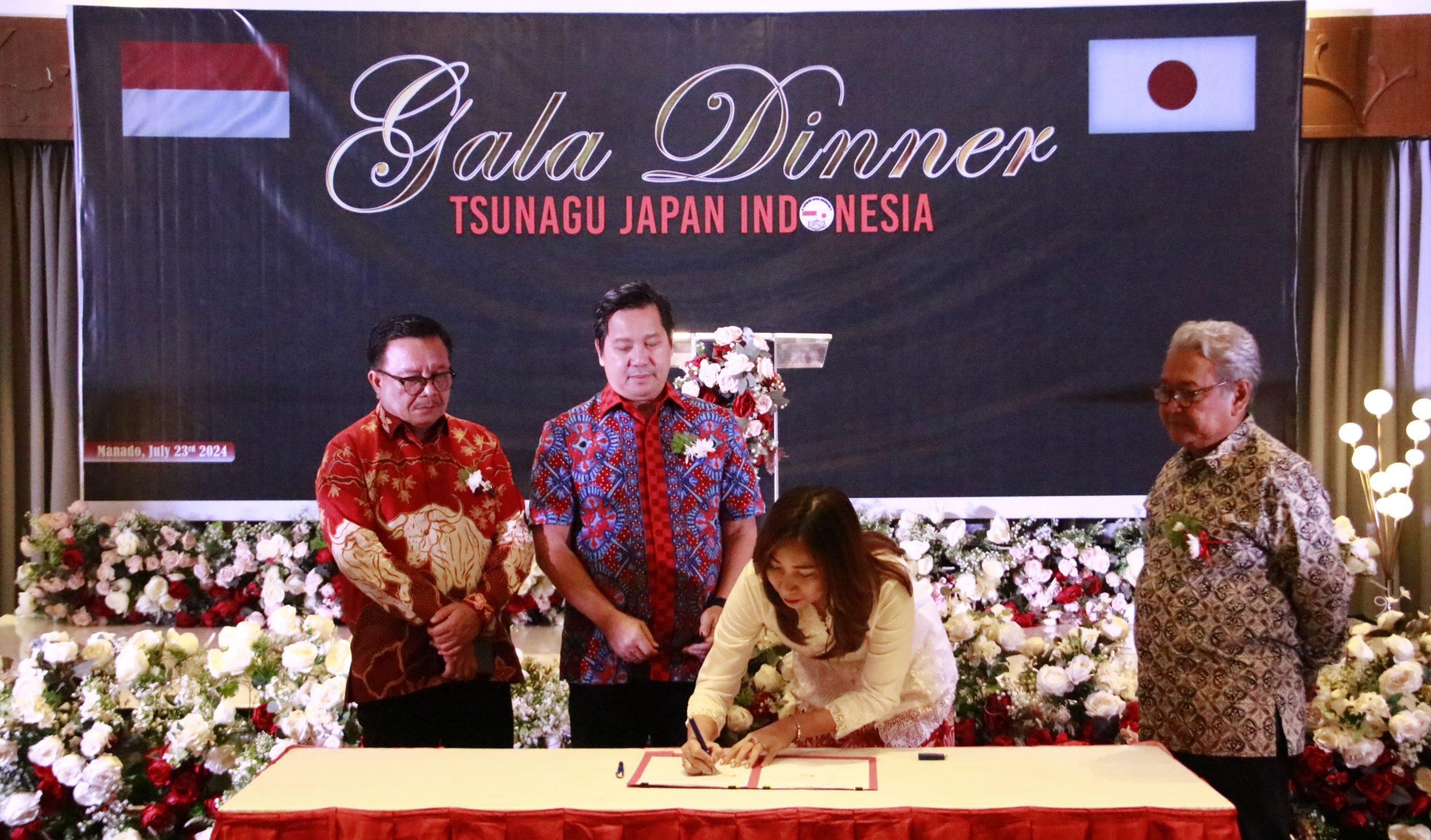 Penandatanganan kerja sama dilakukan Wagub Steven Kandouw didampingi Walikota Bitung Ir Maurits Mantiri MM dengan Owner LPK TJI Liony Leontin Mongi, dalam Gala Dinner di Hotel Four Point Manado, Selasa (23/7/2024) malam.