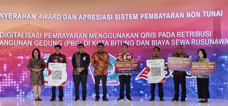 QRIS untuk retribusi Rusunawa diserahkan kepada Walikota Manado, sedangkan QRIS untuk retribusi PBG diserahkan kepada Sekda Kota Bitung.
