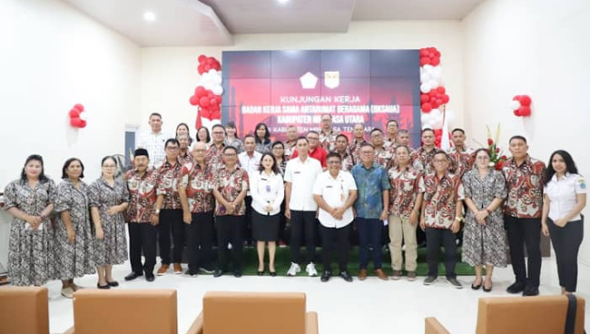 Rombongan yang dipimpin oleh Ketua BKSAUA Minut, Pdt. Ferri Umpung, M.Th., bersama pengurus dan anggota, serta Bagian Kesejahteraan Rakyat (Kesra), disambut hangat oleh jajaran Pemkab Mitra.