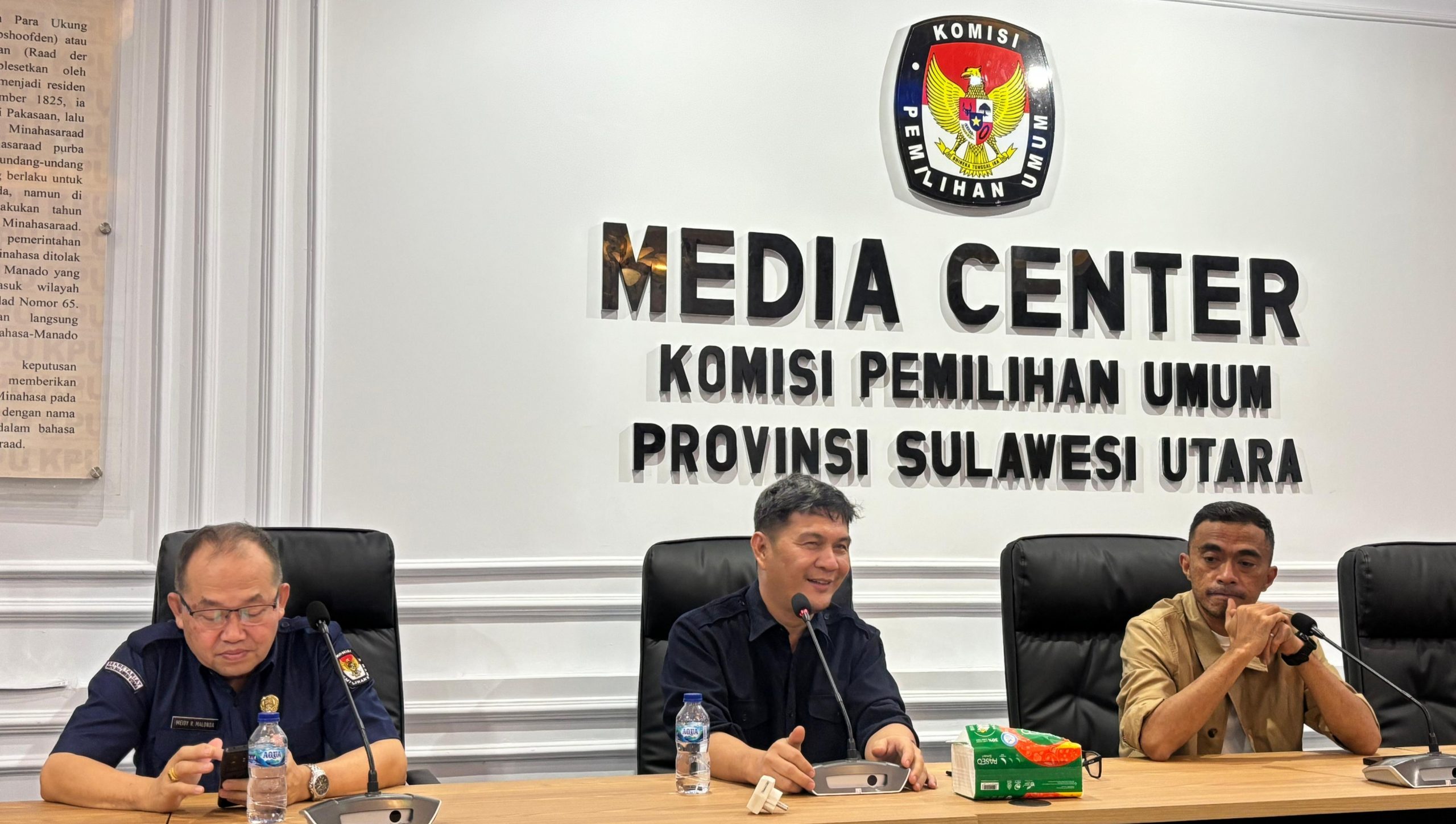 Manado, BERITASULUT.CO.ID – Ketua Komisi Pemilihan Umum (KPU) Provinsi Sulawesi Utara (Sulut) Kenly Poluan didampingi Anggota Awaludin Umbola, serta Sekretaris KPU Meidy Malonda meresmikan media center di kantor KPU, Selasa (19/11/2024) malam.