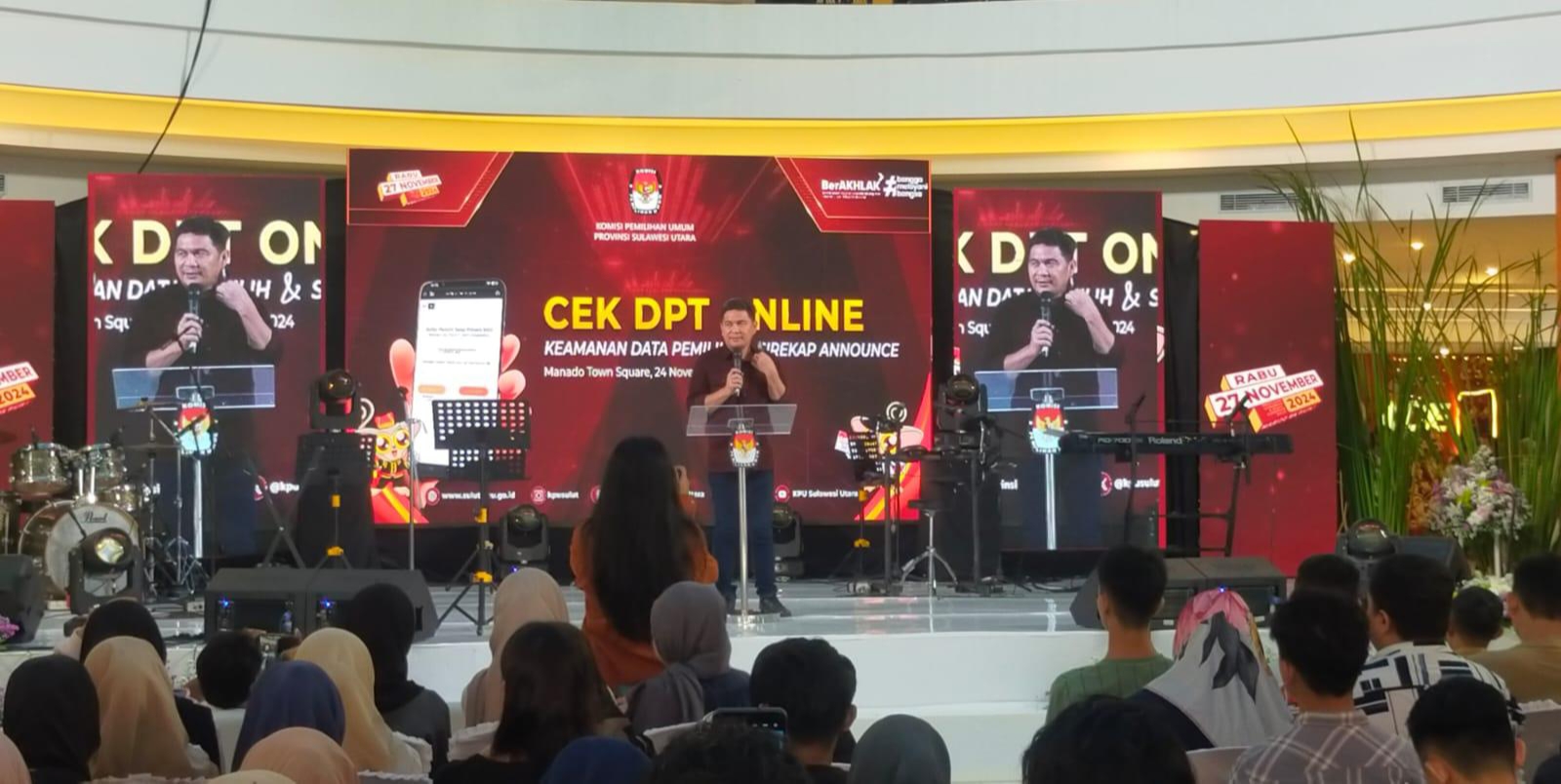Manado, BERITASULUT.CO.ID – Komisi Pemilihan Umum (KPU) Provinsi Sulawesi Utara (Sulut) melakukan Cek DPT Online, Keamanan Data Pemilih dan SIREKAP Announce, digelar di Atrium Mantos 1 Manado, Minggu (24/11/2024)