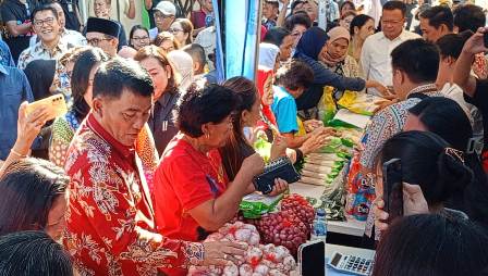 “Kalau kebutuhan dan jasa meningkat, ini akan membahayakan yang lain. Maka pemerintah harus hadir untuk menjaga agar harga pangan menjelang Idul Fitri tetap stabil,” ujar Gubernur Yulius Selvanus didampingi Ketua TP-PKK Sulut Anik Wandriani.