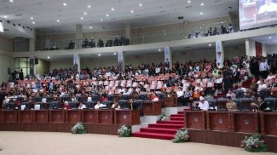 Rapat ini dilaksanakan di ruang rapat paripurna DPRD Sulut dipimpin langsung Ketua DPRD Sulut Fransiskus Andi Silangen, didampingi Wakil Ketua Michaela Paruntu, Royke Anter dan Stella Runtuwene, serta turut hadir Gubernur Sulut Mayjen TNI (Purn.) Yulius Selvanus SE dan Wakil Gubernur Sulut Victor Mailangkay.